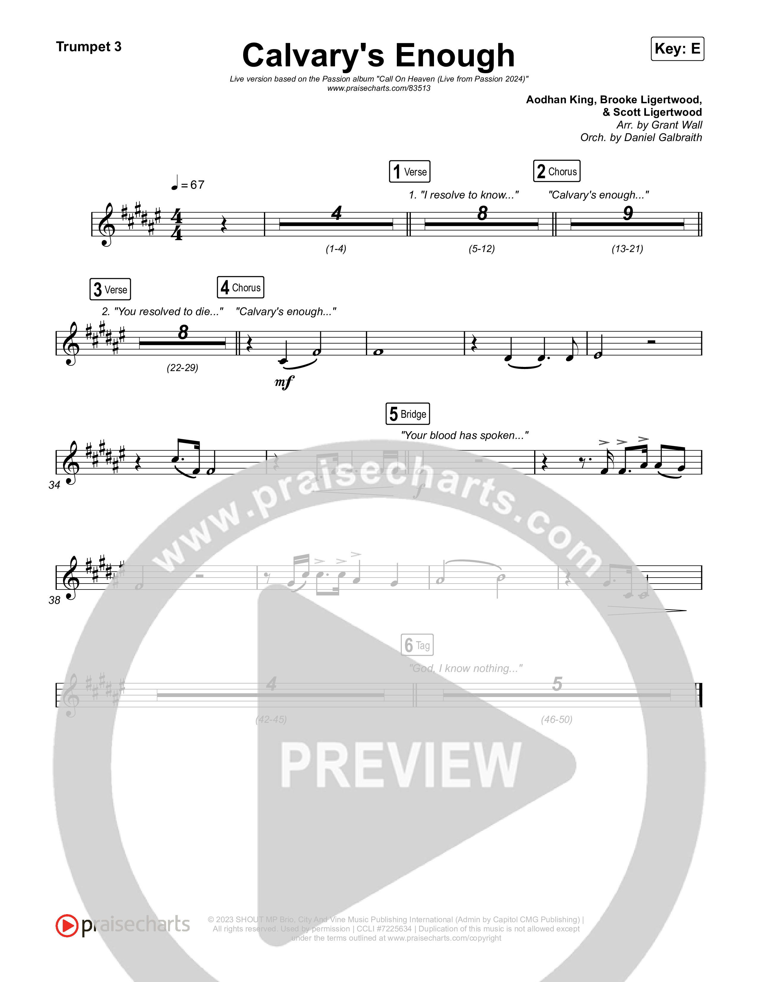 Calvary's Enough (Live From Passion 2024) Trumpet Sheet Music PDF , The song expresses anticipation and hope for the second.
